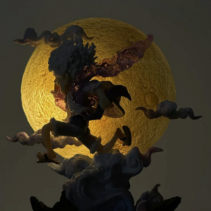 Experience the legendary awakening of Joy Boy with the One Piece: Monkey D. Luffy Gear 5 Moon Lamp Action Figure. This striking collectible captures Luffy in his transcendent Gear 5 form, posed against a luminous full moon that serves as both a dramatic backdrop and a soft-glowing lamp. Surrounded by swirling clouds and detailed with flowing white hair and dynamic sculpting, this figure radiates the mythical energy and playful power of Luffy’s ultimate transformation.
